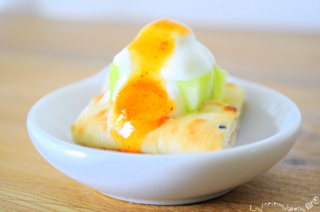 J’ai quasi un peu honte de vous proposer cette quasi non-recette, mais dans mon petit colis Patak’s j’avais des naans et du chutney de mangue, déjà tout prêts, je n’avais plus rien à faire qu’assembler, c’est pas de ma faute !