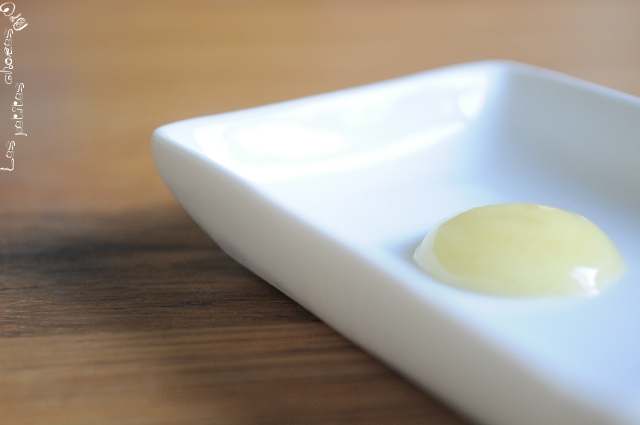 Retirer les 2 bols du bain-marie et verser l’eau de chaux dans l’huile, par petits filets en mélangeant à l’aide d’un petit fouet.