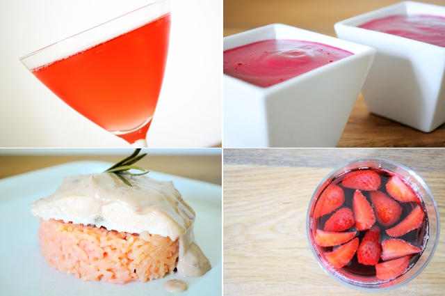 – Des filets de saumon nappée d’une sauce au porto et servis avec du riz rose