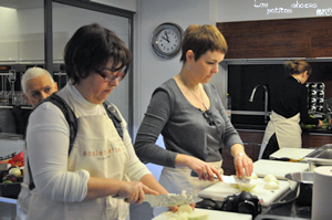 On passe un bon moment. Et comme, j’ai pu l’observer dans les cuisines adjacentes, les cours ne se font pas à 12 personnes comme c’était le cas pour nous, donc les participants en profitent certainement d’avantage.