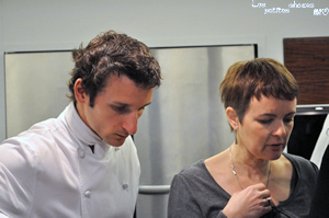 C’est ainsi que je suis partie de bon matin (très bon matin, wake up à 4h du mat’, il faut être frappadingue !) retrouver une belle brochette de popoteurs et papoteuses popoteuses : Patrick, Sophie, Tit, Mercotte, Pascale, Joëlle, Anne, Johanna, Edouard, Requia, Dorian, sans oublier Romain, chef à l’école Ducasse, et les charmantes Alice et Sophie, des éditions Ducasse (Merci !).