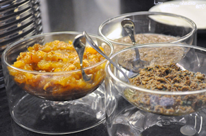 Pour se mettre en appétit, 3 condiments en tartine : anchoïade, tapenade et condiment aux fruits secs.
