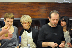 Et oui peler des pommes et des poires ou ciseler des choux c’est sympa aussi !! Ambiance! Paule et Christophe sont très intéressants dans leurs explications du livre,qui est une belle réussite par