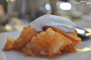Si j’avais un seul bémol à émettre, çà serait que j’ai eu le sentiment de passer à coté de la réalisation et des tours de main des autres recettes. En effet, Mercotte, Réquia et moi, étions préposées au dessert. Au milieu des pommes et des poires, je n’ai pas beaucoup suivi ce qu’il se passait à coté. Mais je pense que cela été surtout dû au fait que nous étions nombreux pour l’occasion, il aurait été difficile d’impliquer tout le monde dans toutes les recettes.